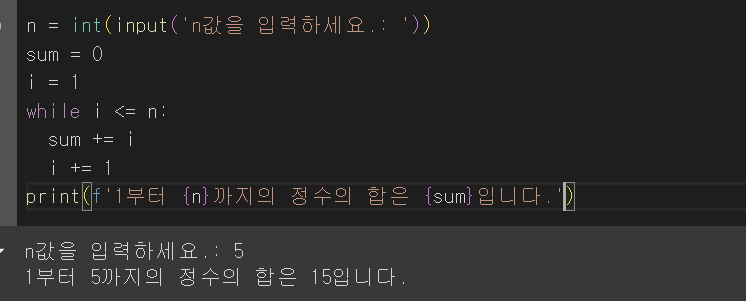 - while 조건식 : 명령문 의 형태로 어떤 조건이 성립하는 동안 반복해서 처리하는 반복구조, 일반적으로 루프라 칭함.
