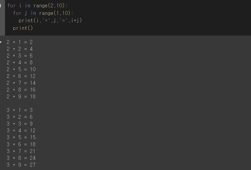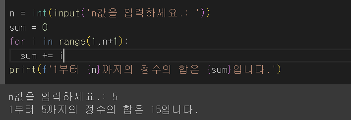 - for 반복문 : 변수가 하나만 있을 때 주로 사용하며 range와 같이 사용됨.