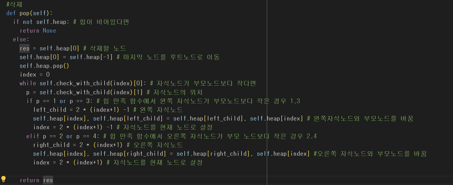 -여기서 둘다 있는 경우 첫번째 if문은 오른쪽, 왼쪽 자식노드가 부모노드보다 클경우이다. 주석 오타!