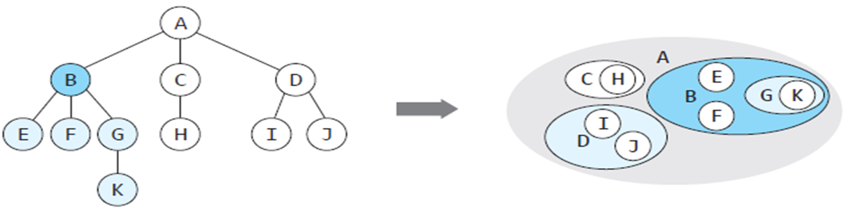 - 숲(forest) : 서브트리의 집합, 트리에서 루트노드를 제거하면 서브트리들로만 생기는 집합