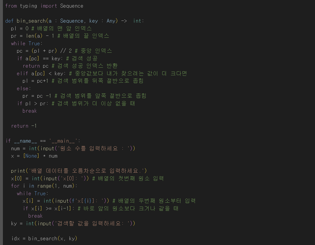 - 정렬되어 있는 자료에 대해서 수행하는 검색 방법