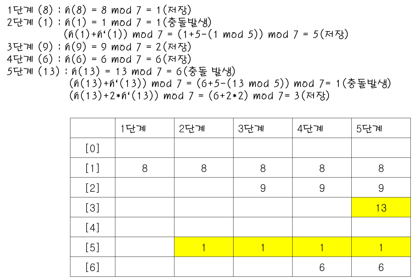 ㄴ step = C - (k % C) -> h(k), h(k)+step, h(k)+2*step