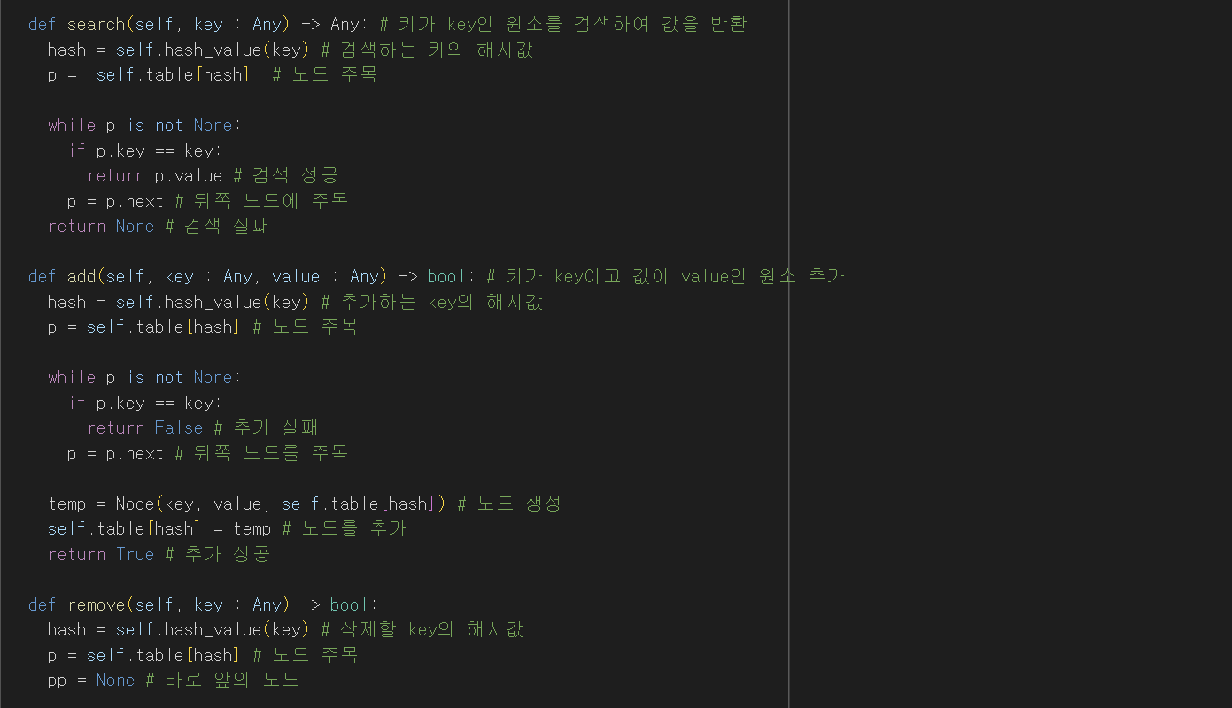 ㄴ 각 버킷에 삽입과 삭제가 용이한 연결리스트 할당