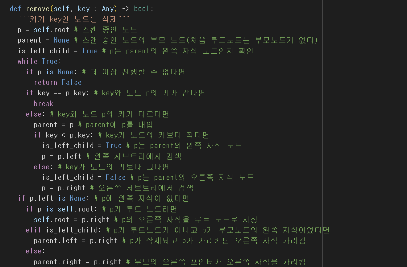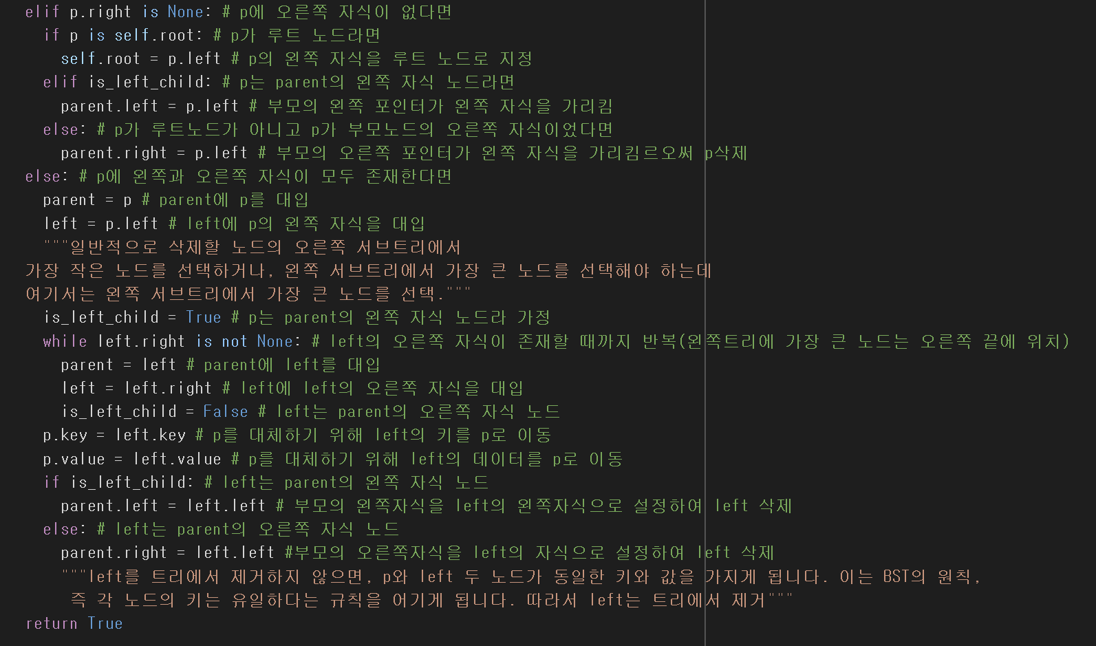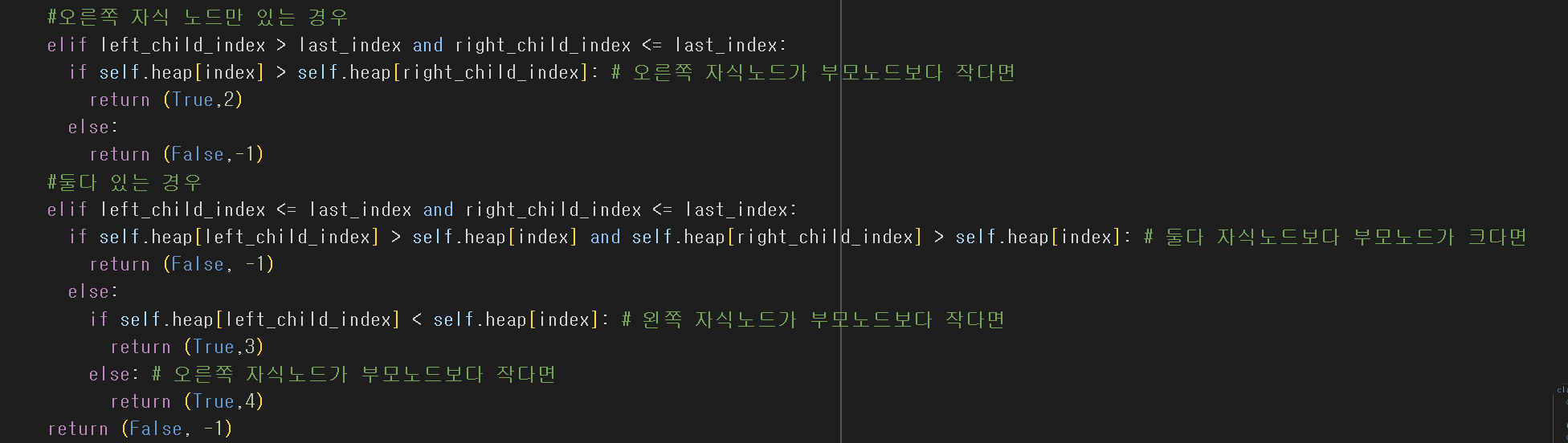 -여기서 둘다 있는 경우 첫번째 if문은 오른쪽, 왼쪽 자식노드가 부모노드보다 클경우이다. 주석 오타!