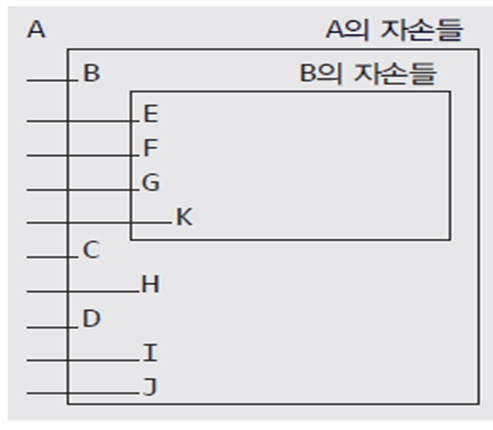 - 상위 원소에서 하위 원소로 내려가면서 확장되는 트리모양 구조