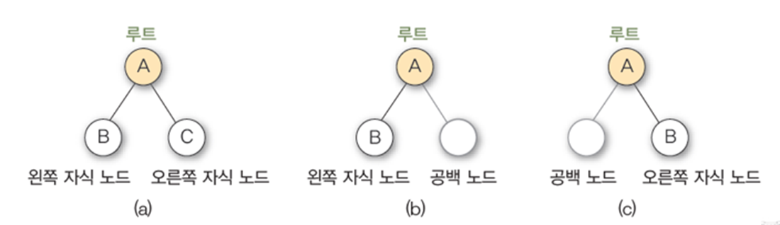 - 모든 노드가 2개의 서브트리를 가지고 있는 트리