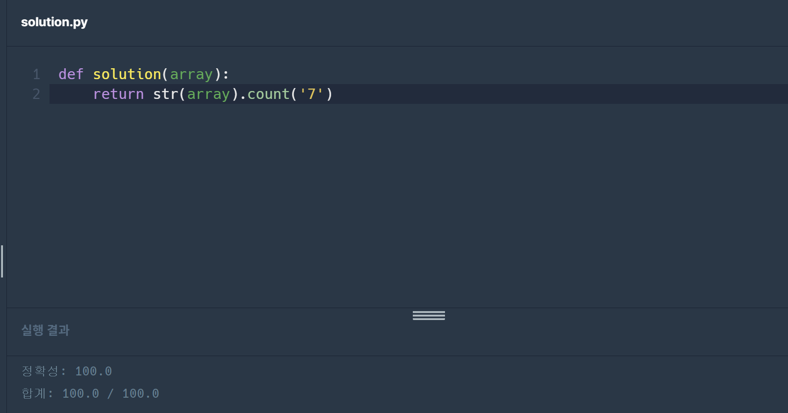주어진 array는 배열이므로 이를 str, 문자열로 형변환을 해주고 count('7')를 해주면 7의 개수를 리턴해준다.